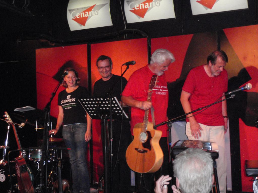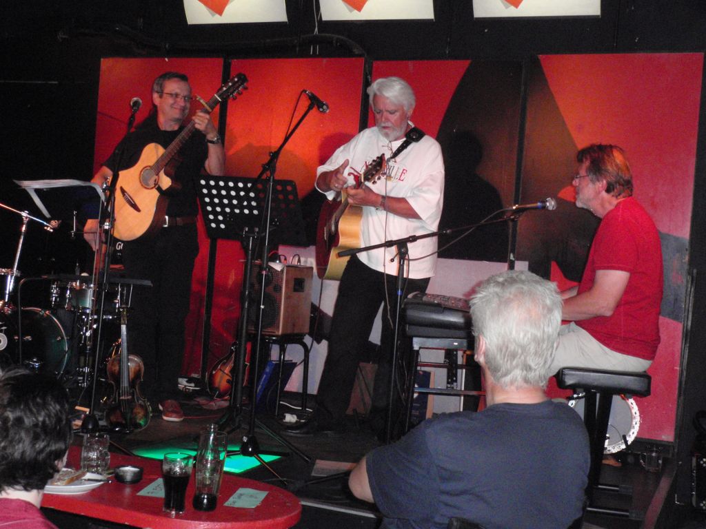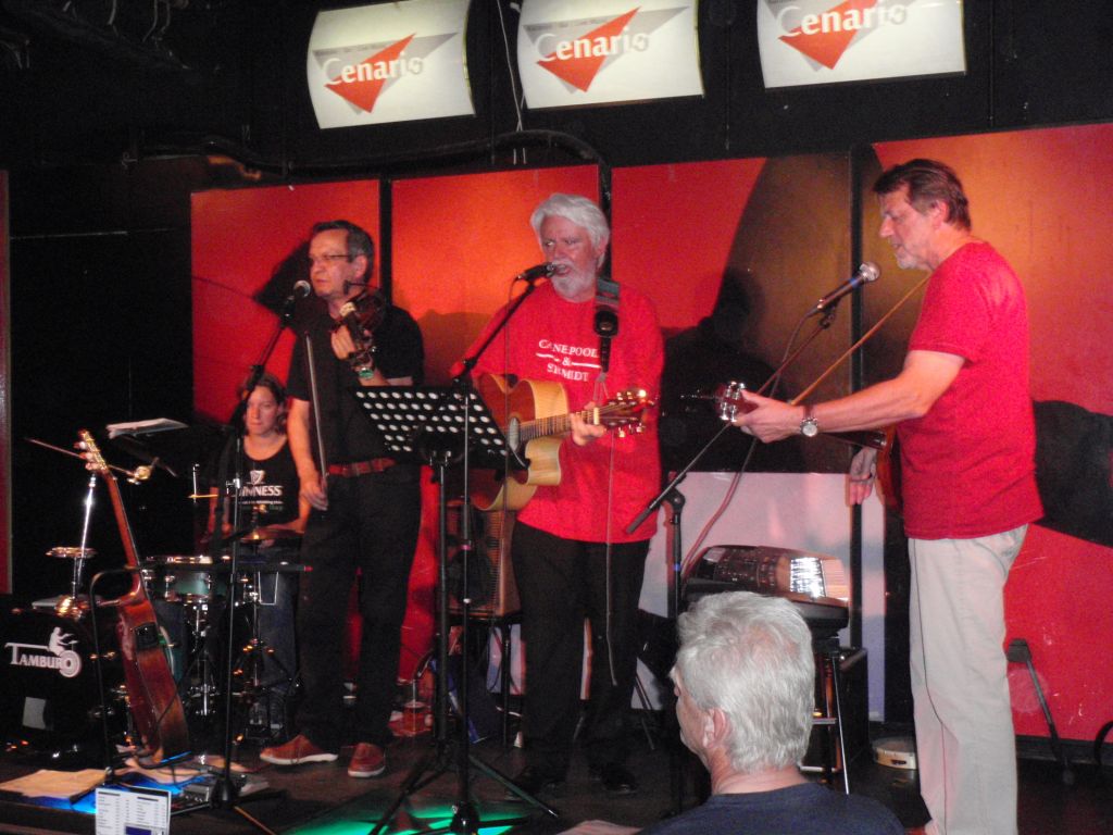 Der Qualität und der Spielfreude tat dies aber keinen Abbruch und sie spannten auch zu viert eine musikalische Brücke von Irland nach Amerika und wieder zurück. So gab es Swing aus den 20er Jahren, amerikanische Folkmusik aus den 60ern, dazwischen Cajun, Old Country und auch Rock’n Roll. Drei der Musiker – Wilfried, Ewald und Serge – sind ehemalige Mitglieder der Band BLUEGRASS SPECIALS, was sich in sehr vielen traditionellen irischen Songs (The Fields of Athenry, In The Rare Old Times), Jigs und Reels, Bluegrass und einem ausgezeichneten A Capella Spiritual (Swing Low Sweet Chariot / Rock me Lord) niederschlug.