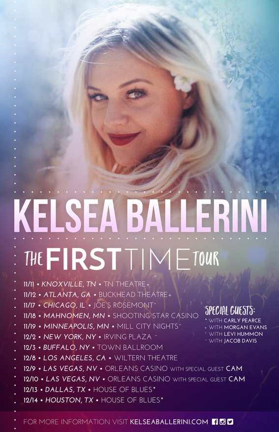 For information on Kelsea Ballerini, THE FIRST TIME Tour and brand new Fan Club visit the newly launched KelseaBallerini.com. Reach out to her on Facebook, Twitter, and Instagram.